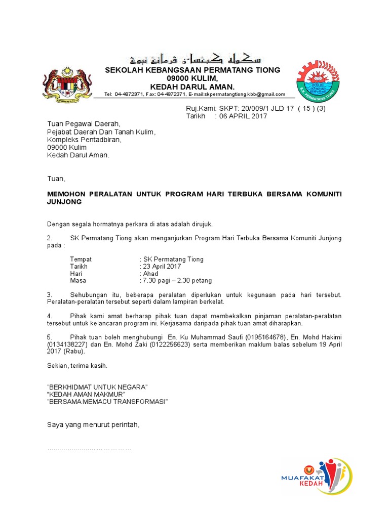 Contoh Surat Permohonan Kebenaran Meminjam Item Barang Alat Pdf